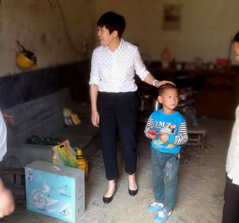 (陈董亲自把捐款递给孩子并鼓励他要听话懂事)