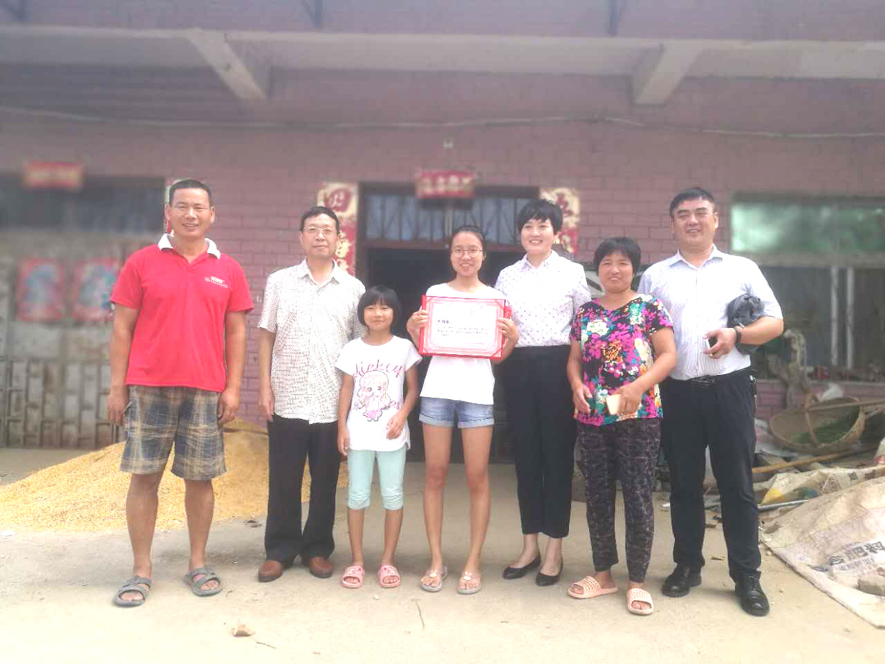 2017年8月26日,河南美锐大药房连锁有限公司董事长陈虹携公司高管及部分骨干员工,与我市平桥区人大几位领导一起走访了几个贫困大学生家庭,现场捐赠现金并为他们送去大米、棉被和食用油等生活用品。