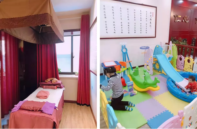 另外,二楼小儿推拿、艾灸、小儿药浴及成人理疗等项目吸引了众多成人和小朋友前来体验,儿童乐园里到处充满了小孩子的童声童语,家长们在等待的间隙品尝着养生药膳和茶点,好不轻松惬意啊。