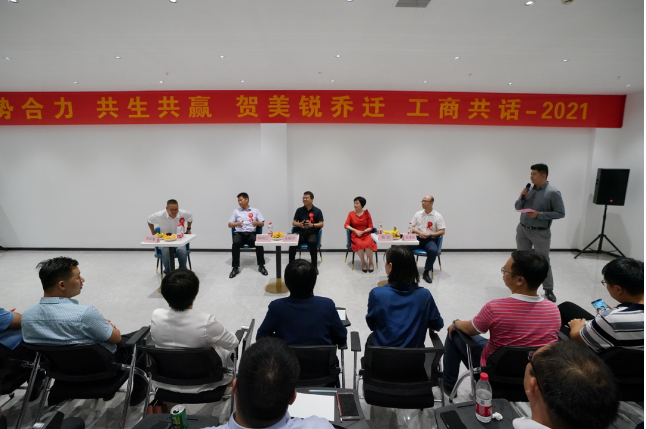 乔迁仪式结束后,现场嘉宾、供应商代表又举行了一场以“聚势合力 共生共赢”为主题的沙龙论坛,共商企业发展大计。